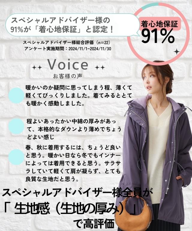 - 気軽に着られて、軽くて温かいコートです。 毎日着て重宝しています。