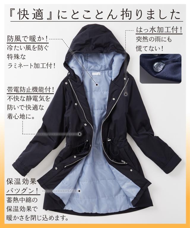 コート レディース 蓄熱サーモプラスモッズ 防風 はっ水 帯電防止 冬 S/M/L/LL