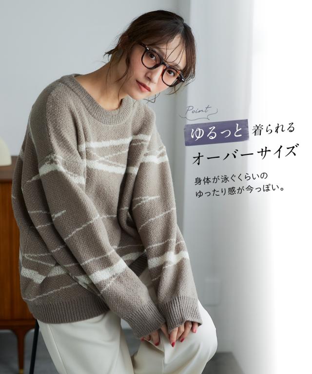 ニット セーター レディース 配色ジャガードチェックオーバーサイズ 冬 S〜M/L〜LL/3L〜4L ニッセン nissen