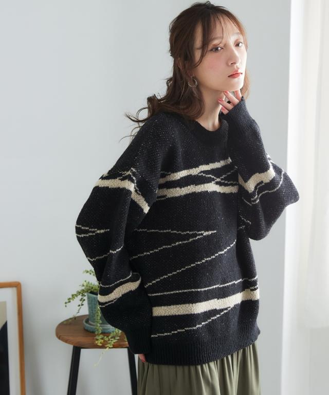 ニット セーター レディース 配色ジャガードチェックオーバーサイズ 冬 S〜M/L〜LL/3L〜4L