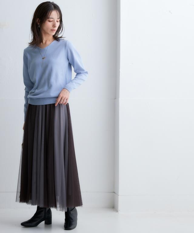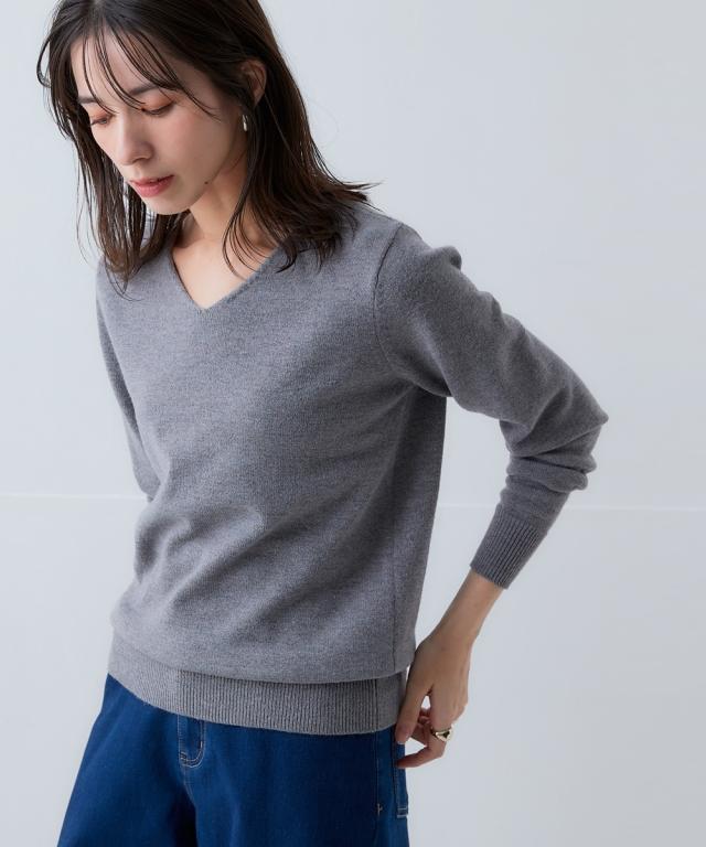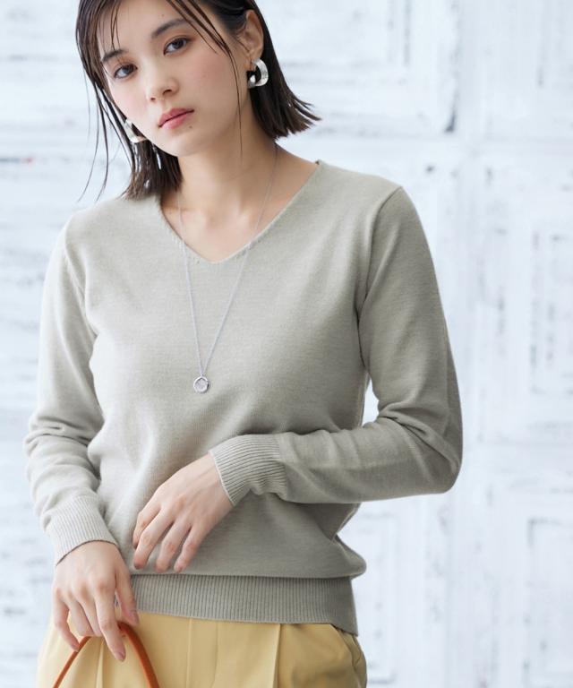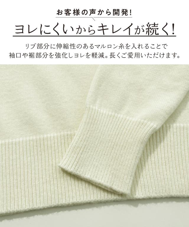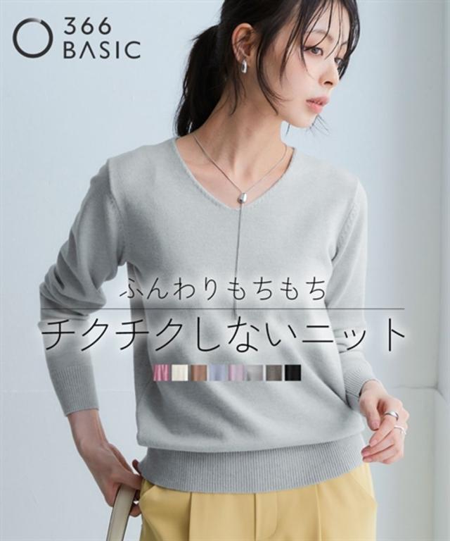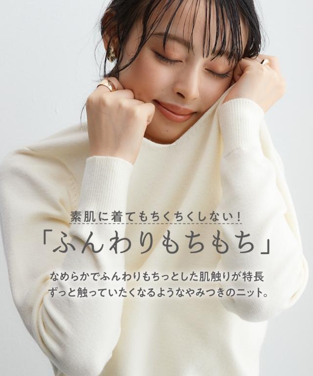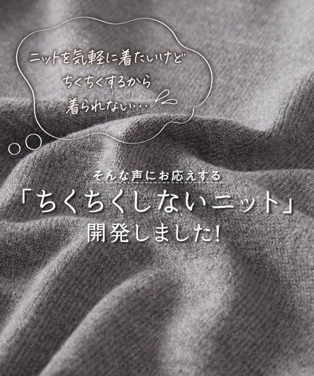 ニットを気軽に着たいけどちくちくするから着られない…。そんなお悩みにお応えする『ちくちくしないVネックニット』を開発しました! 「乾燥肌」「敏感肌」どんな小さな刺激にも反応してしまう、ニットを着たいのに不安ばかりだった人にぜひ着ていただきたい、ふんわり優しい肌ざわりに仕上げた『素肌に着てもちくちくしない』ニットです。 なめらかでふんわりもちっとした、ずっと触っていたくなるようなやみつきの肌触りが自慢の逸品。