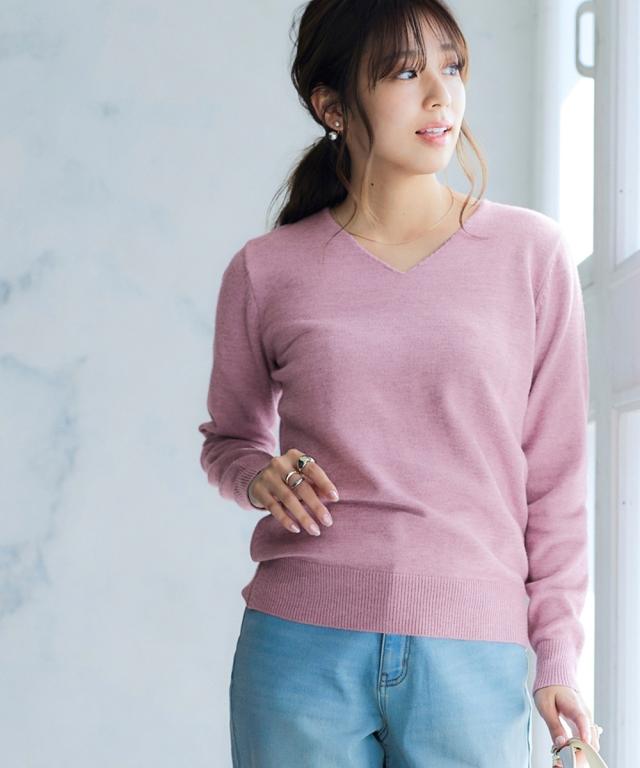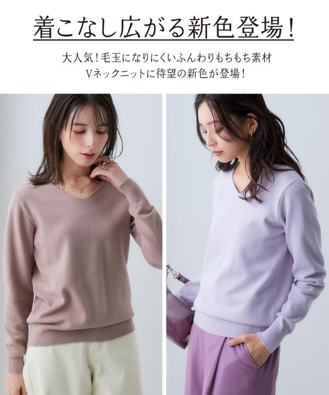 ニット セーター レディース 洗える Vネック 毛玉になりにくいふんわりもちもち素材 冬 S/M/L/LL