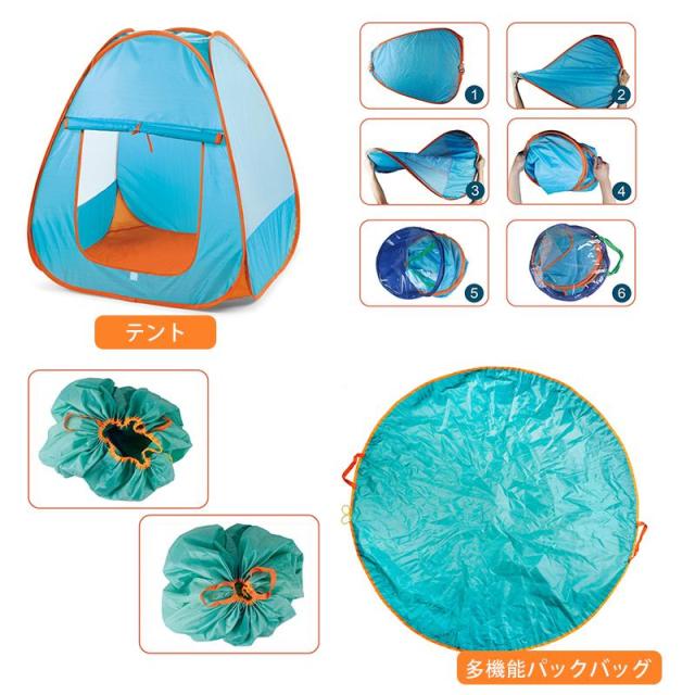 【子供の秘密基地・キッズテント】道具を使う必要がなし、テントが自動的に開き、使わない時、折り畳んで収納可能、スペースが最大限に節約できます。大きさも子供2人入れるサイズで楽しく本を読んたり、休憩したり、かくれんぼしたり、自由的に遊びたり、最高です。花見、キャンプ、BBQ、アウトドアの時、このキャンプセットをお持ちして、軽くて面白いです。