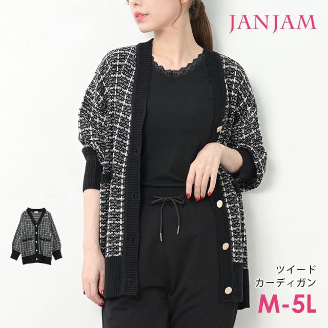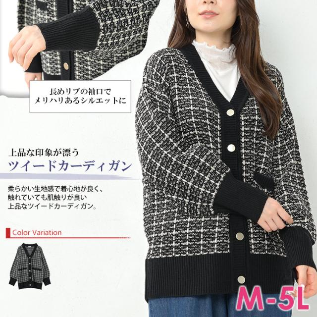 送料無料※沖縄/北海道対象外 大きいサイズ レディース ツイードカーディガン 長袖 前開きボタン Vネック 羽織り トップス M/3L/4L/5L ゆったりサイズ ぽっちゃり女子 プラスサイズ