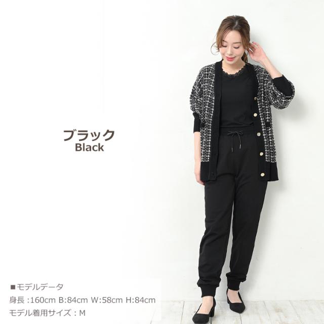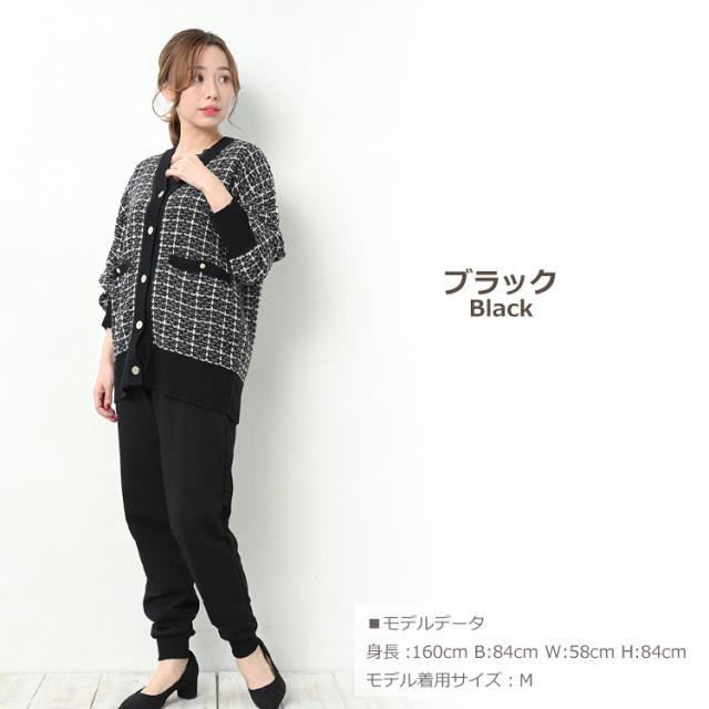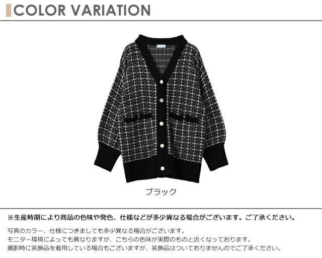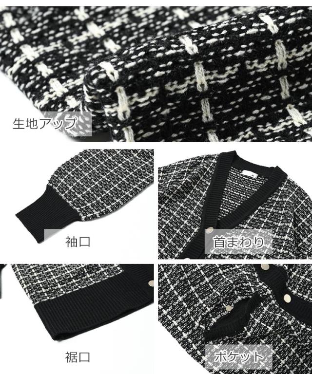 馴染みのあるツイードで上品さを演出する ニットカーディガン。 ゆったりシルエットで二の腕や お尻周りの身体のラインをカバー。 袖口と裾のリブ仕様で こなれ感のある仕上がりになっています。 |