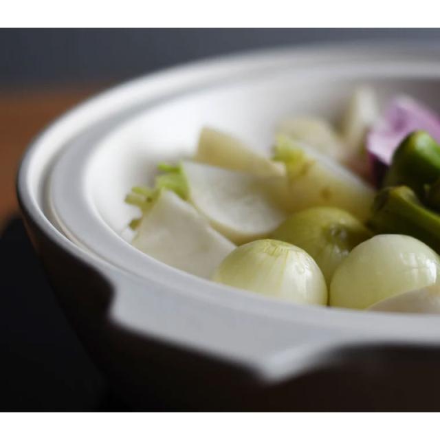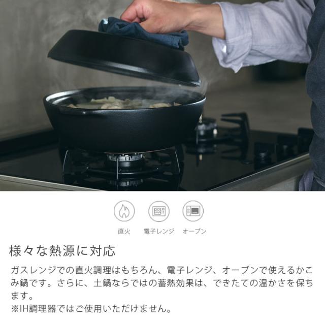 ガスレンジでの直火調理はもちろん、電子レンジ、オーブンで使える耐熱陶器製のかこみ鍋。