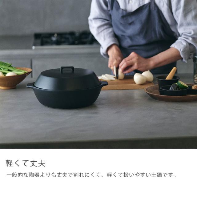 一般的な陶器に比べて丈夫で割れにくく、軽くて扱いやすい土鍋です。