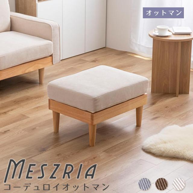 コーデュロイ特有の起毛の肌触りが心地よい、肘置きにパイピングを施した柔らかい印象のMeszria(メスリア)シリーズのオットマン。