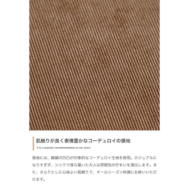 シックで落ち着いたデザインで、北欧スタイルはもちろん、ナチュラルやモダンなど様々なテイストに調和します。コーデュロイ生地は、縦横に凹凸があり、印象的な表情を持っています。これがカジュアルすぎず、大人らしい雰囲気を醸し出し、さらに、心地よい肌触りでオールシーズン快適に使用できます。