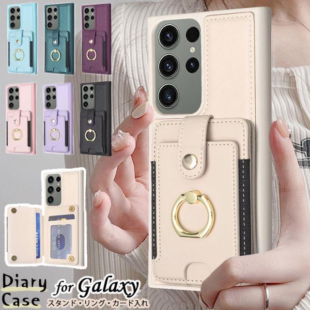リング付 Galaxy S23 Ultra 5G ケース Galaxy S22 Ultra 5G 背面手帳型 カバー カードポケット Galaxy S21 Ultra 5G ケース 衝撃吸収 Galaxy S21+ 5G カバー レンズ保護 スタンド機能 Galaxy S21 5G ケース 高品質 PUレザー オシャレ スナップ式 ギャラクシー スマホケース