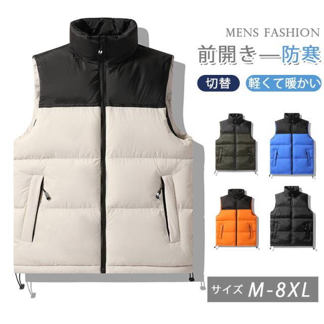 ダウンベスト メンズ 中綿ベスト 中綿入り チョッキ 袖なしジャケット インナーベスト ヨーク切替 アウター 暖かい 防寒着 前開き 秋冬コート