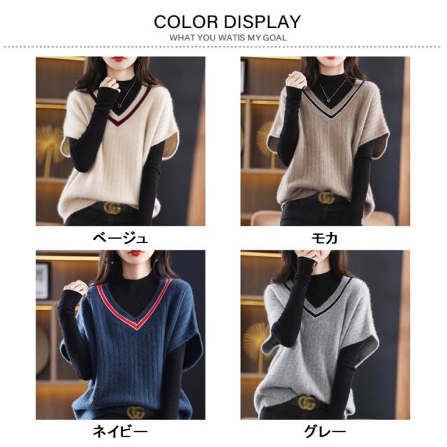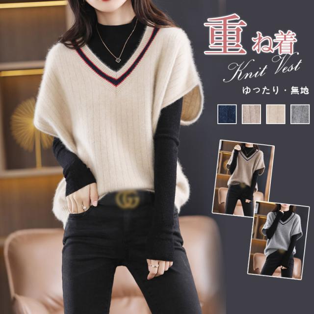 ニットベスト レディース カーディガン Vネック チョッキ トップス 薄手 ゆったり セーター 秋コーデ ノースリーブ おしゃれ シンプル 秋冬
