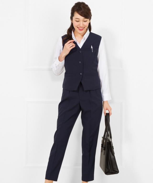 オフィスでの企業制服(ユニフォーム)として使える、ビジネスシーンに欠かせない事務服対応ベスト。