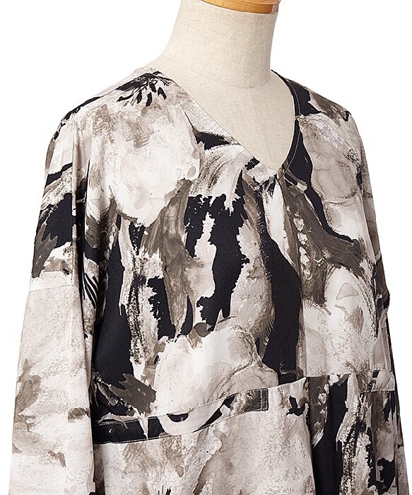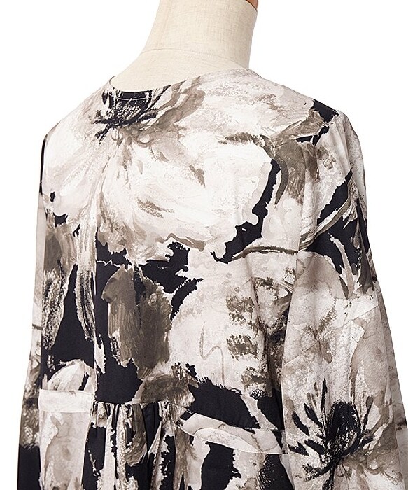 ◆ 大人の華やかワンピース ◆アートな花柄がエレガント!ゆったり さらりと着れるワンピースです。サイドのドローストリングでギャザーを寄せるとシルエットの変化が楽しめます。前後着用可能デザインなのでラウンドネック Vネックとその日の気分でチェンジできるのも嬉しいポイントです。個性あふれる印象的な花柄ですが レイヤードしても可愛い大人のアクセントアイテムになること間違いなし!《お取り扱いについて》・着用またはお取り扱いの際は、アテンションタグや洗濯ネームを必ずご確認ください。《注意事項》※商品の色や質感をできるだけ忠実に再現するよう心がけていますが、撮影場所やお使いのモニター環境により、実物と若干異なる場合がございます。予めご了承ください。※写真を許可無くコピー・転用することは固くお断りします。