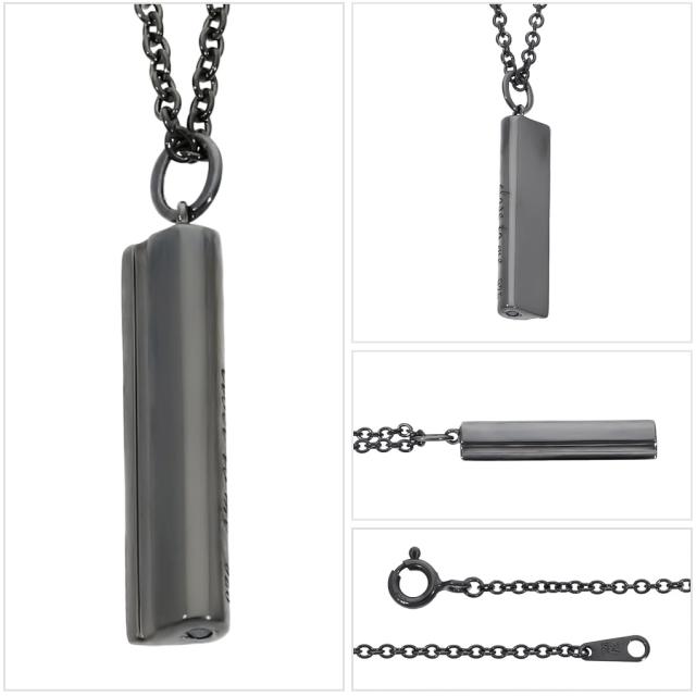 刻印無料 close to me ブルーダイヤモンド オーバル バー シルバー ネックレス ペンダント ブランド シルバー925 シンプル スティック ブラック 黒