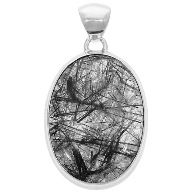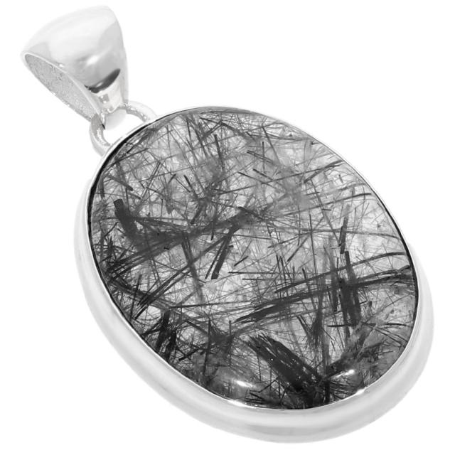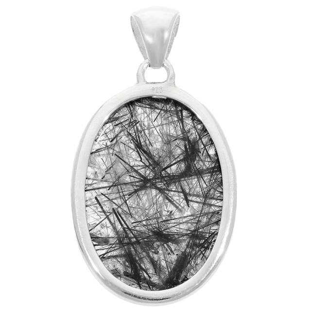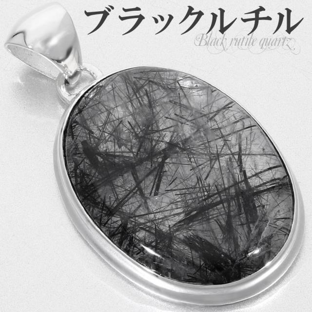 ブラックルチルクォーツ シルバー ペンダントトップ オーバル ブラックルチル 天然石 パワーストーン ペンダント ルチルクォーツ ルチル 金運 魔除け