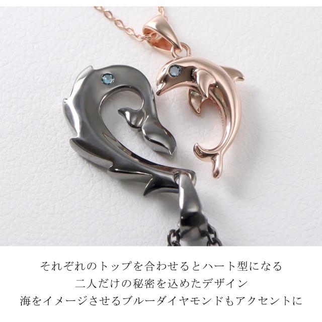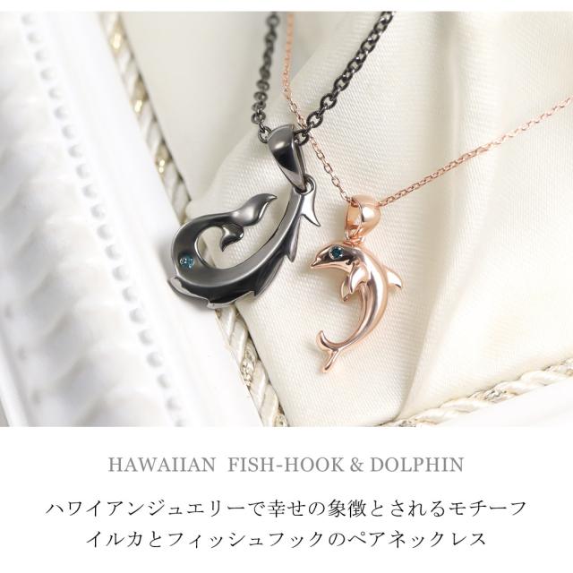 刻印無料 close to me ハワイアンジュエリー ブルーダイヤモンド シルバー ペアネックレス フィッシュフック 釣り針 イルカ ドルフィン 海豚 ブラック