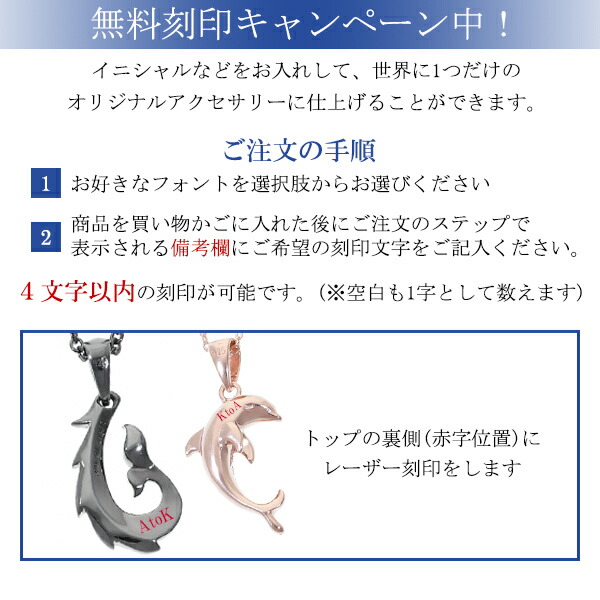 ※ご希望の刻 印文字は商品をお買い物かごに入れた後、ご注文ステップ時の備考欄に、メンズ・レディースそれぞれご記入下さい。