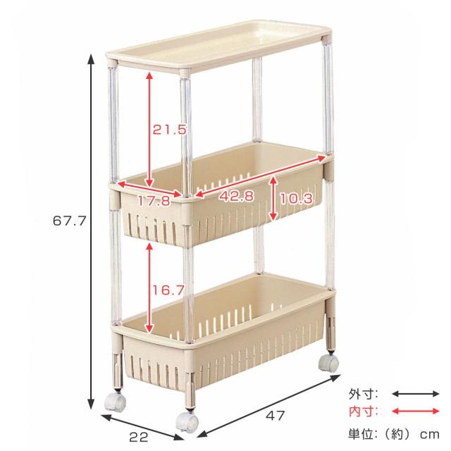 キッチンワゴン ルーチェワゴン 3段 幅22cm 奥行47cm 高さ67.7cm ( キャスター付き 天板付き キッチンストッカー 日本製 マルチワゴン キッチンラック ワゴン ラック 収納 ワゴン収納 バスケットワゴン キッチン 洗面所 三段 )