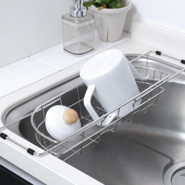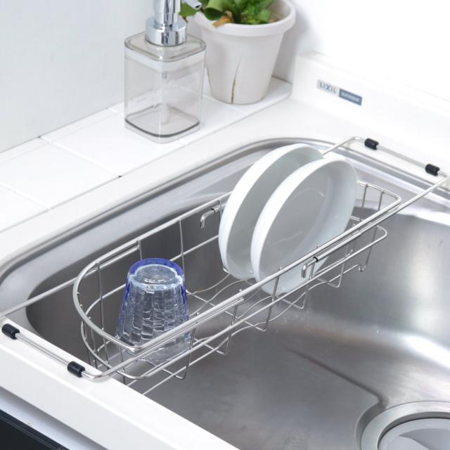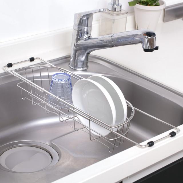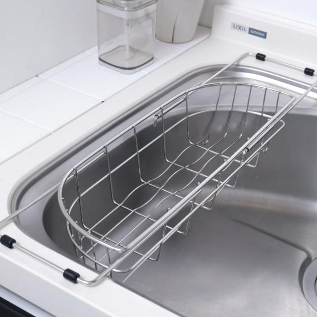 シンクのサイズに合わせて伸縮できる水切りバスケット