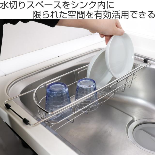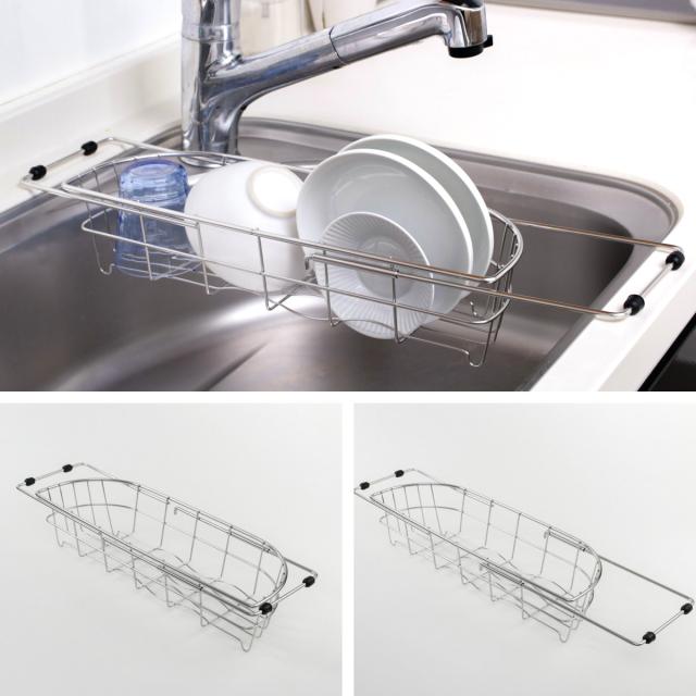 水切りラック デュアリス 18-8ステンレス製シンクスライド式水切りバスケット スリム ( ステンレス 日本製 シンク上 伸縮 スライド式 水切りバスケット かご ラック シンク 渡せる 水切り シンク渡し 新生活 洗い物 食器 洗い )