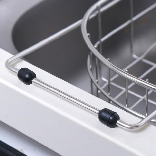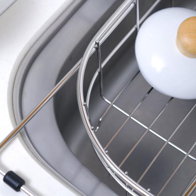 角はカーブ形状となっており、シンクの端にぴったり沿わせて設置できます。きっちり端まで寄せられるので、無駄なスペースを作らずシンクを広く使えます。