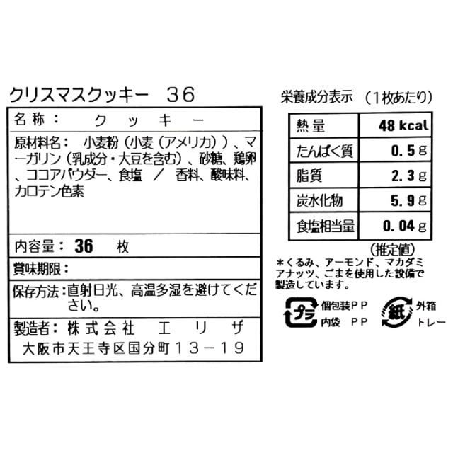 クリスマス クッキー 36枚 (3種×12) ミルク ココア 風味 サンタ 雪だるま ツリー