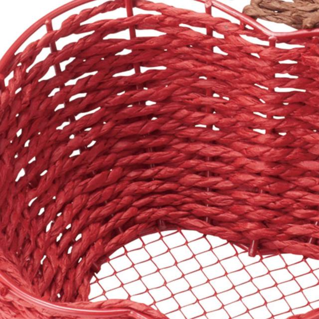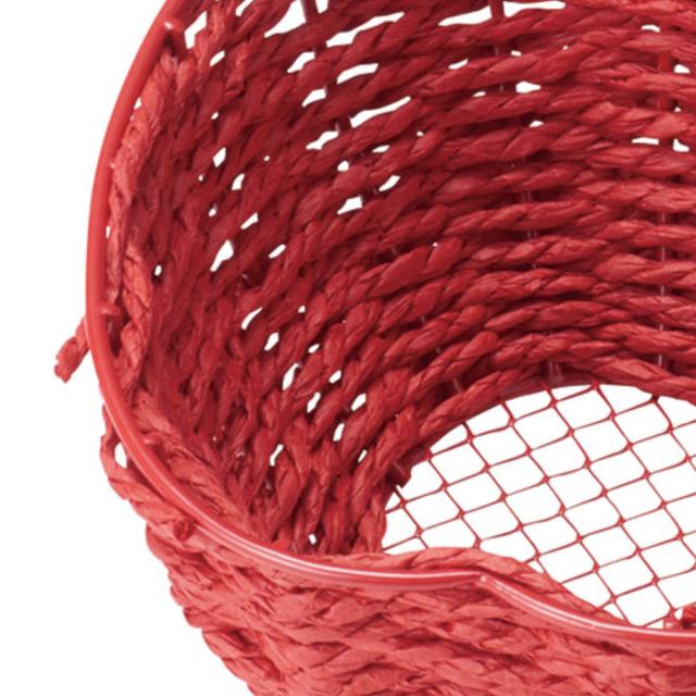 鮮やかな赤色が目をひく、りんご型のカワイイミニバスケットです。側面にペーパー素材を編み込んでいるので中に入れたものを傷つけにくくなっています。お気に入りの小物や、飴などのお菓子はもちろん、お手洗いなどにアメニティーセットを入れて置いたりとアイディア次第で色々なところでお使いいただけます。また、ドライフラワーをかざったりプレゼント用のギフトボックスとして活用するのもおすすめです。