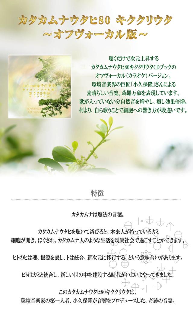 | 商品名 | 【AREE(アレー)CDブック】カタカムナウタヒ80・キククリウタ オフボーカル |