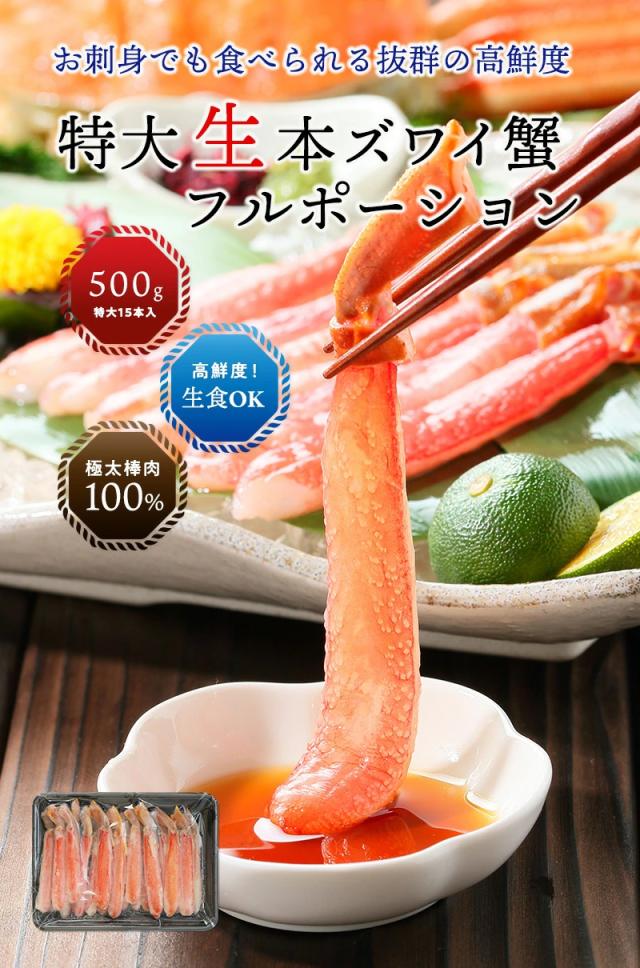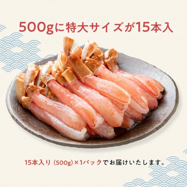 特大“生”本ズワイ蟹“太脚棒肉”フルポーション 15本 500g お刺身OK 高鮮度 カニ かに ズワイガニ ポーション 内祝い 父の日 敬老の日 贈答 お年賀 お歳暮 ギフト