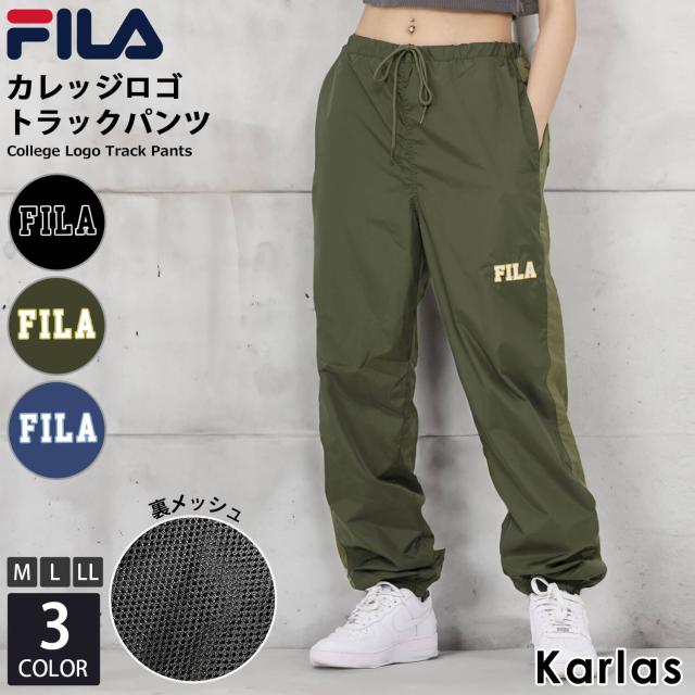 FILA フィラ トラックパンツ メンズ レディース 裏メッシュ 秋 冬 ロングパンツ イージーパンツ カレッジロゴ 刺繍 部屋着 ルームウェア karlas
