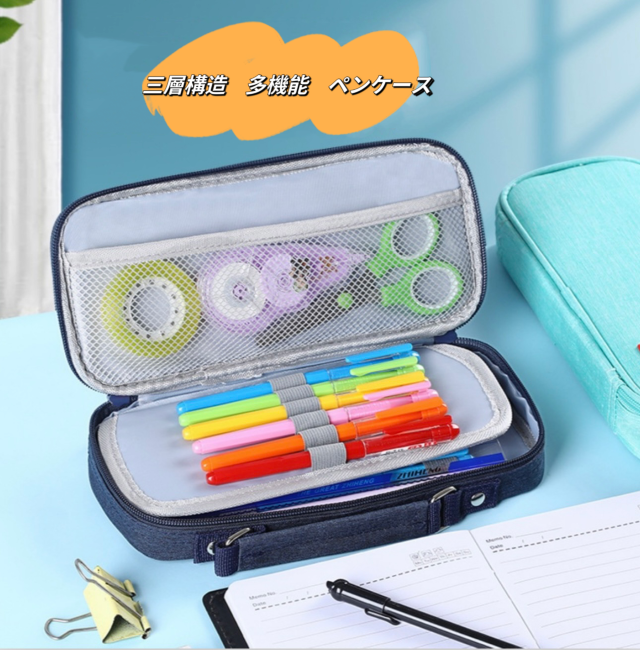 筆箱 3層構造 ペンケース おしゃれ シンプル 大容量 多機能 軽量 サラリーマン ビジネス 社会人用 大人 高校生 中学生 男の子 女の子 大学生 小学生 子供用 手提げ付き 筆入れ プレゼント ギフト