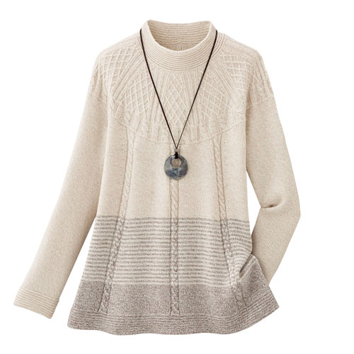 日本製 配色ホールガーメントセーター オフベージュ ニット セーター レディース 婦人服 ミセス シニア 女性 ハイネック モックネック グラデーション アクリル ウール アンゴラ シニアファッション 40代 50代 60代 70代 80代 母の日 お母さん 秋物 冬物 秋冬
