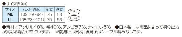 ※前身頃は同柄、後見頃はケーブル編みなしです。