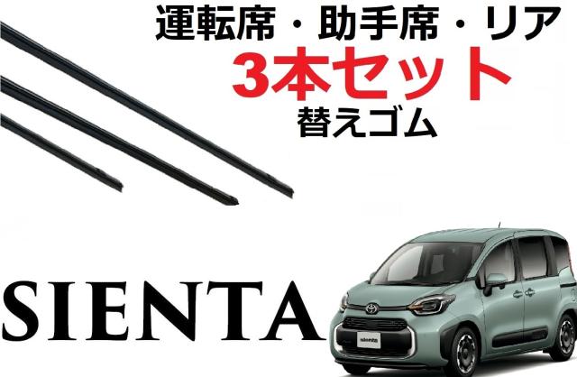 新型シエンタ 10系 ワイパー 替えゴム 適合サイズ フロント2本 リア1本 合計3本 交換セット TOYOTA純正互換品 運転席 助手席 MXPC10G MXPL10G MXPL15G sienta ワイパー研究所