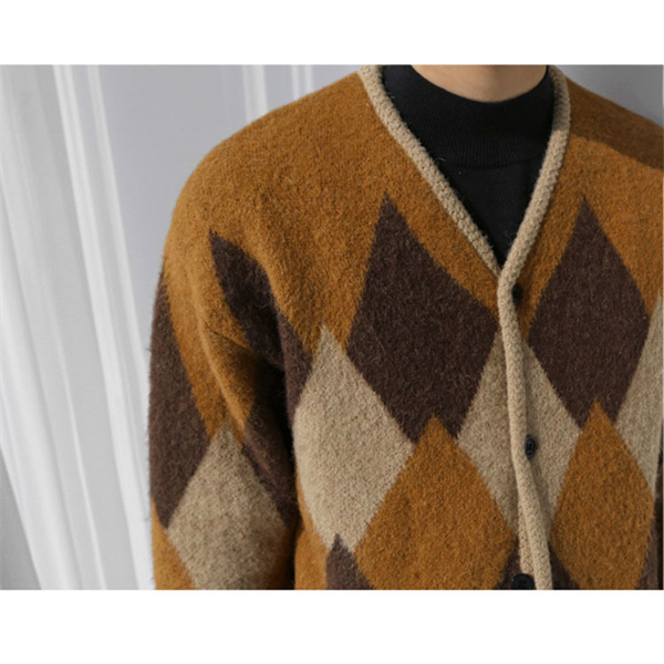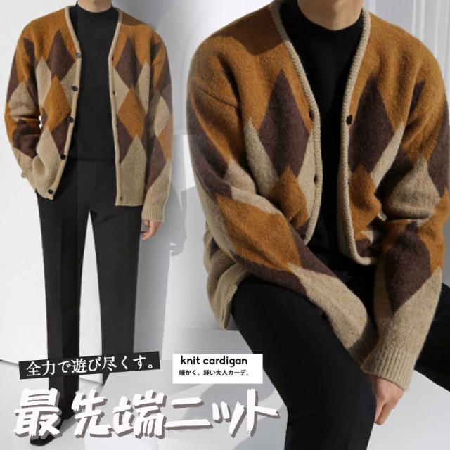 ニットカーディガン メンズ チェック柄 秋 冬 ニット スクールカーディガン スクールセーター アウター 羽織り 学生服 学校 制服 通学 入学 男子