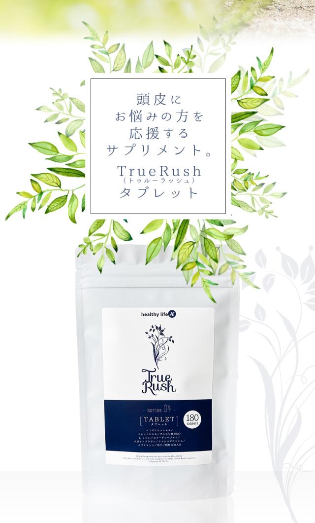 healthylife TrueRushタブレット【頭皮 スカルプケア ヘアケア 美髪 髪の悩み ミレットエキス 亜鉛 コラーゲン大豆イソフラボン 菊芋 高麗人参】180粒
