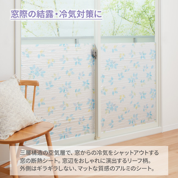 窓 断熱シート マドピタシート アルミの力 オールシーズン対応 ハーフ(90×90cm) リーフ柄 ×10本セット H-1103 | 断熱 結露防止 UVカット 遮熱 紫外線カット 節電 省エネ 暑さ対策 寒さ対策 冷暖房効果 水不要 シール