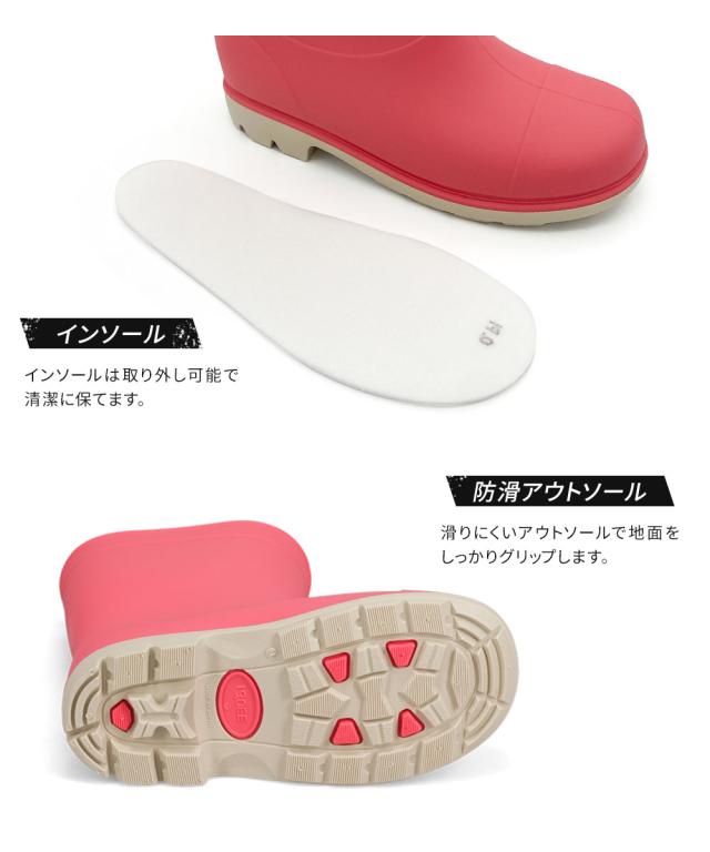 ハイテック レインブーツ キッズ ジュニア 軽量 レインシューズ 可愛い シンプル 男の子 女の子 無地 カジュアル おしゃれ 雨靴 長靴 軽い 柔らかい 洗えるインソール PVC 日本製 HI-TEC HT KD051 SKORAIN II グリーン ベージュ ピンク ネイビー KD051