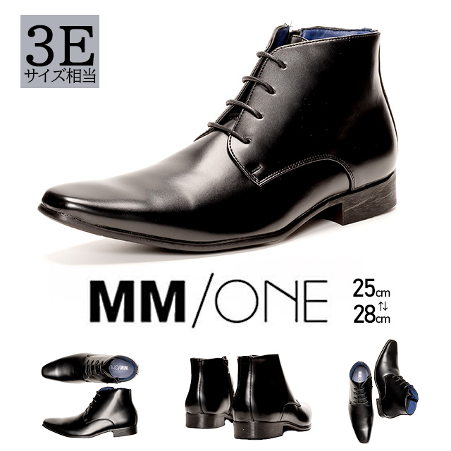 冬新作 新作 MM/ONE ビジネスブーツ 3E相当 プレーントゥ 外羽根 スクエアトゥ ロングノーズデザイン サイドジップ 就活 ビジネスシューズ ビジネス ギフト 靴 シューズ 黒 ブラック メンズ エムエムワン ブランド 送料無料 新作