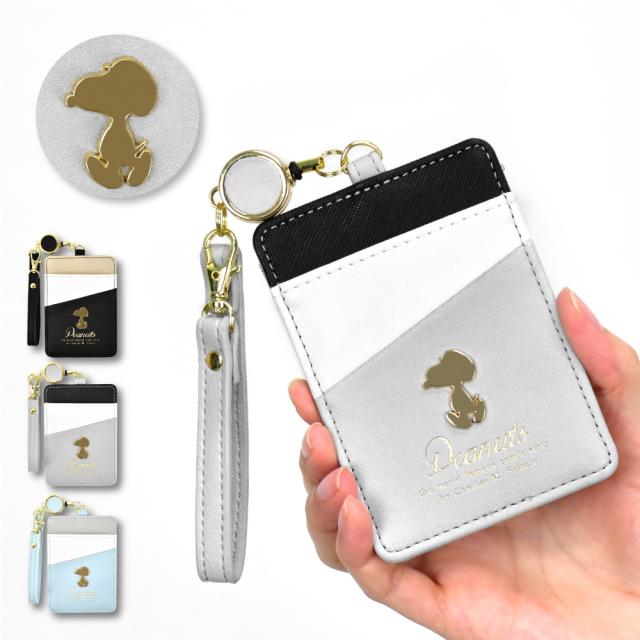 スヌーピー パスケース 定期入れ カードケース リール付き バイカラー シンプル 大人向け 合皮 フェイクレザー レディース 女子 女の子 大学生 高校生 中学生 小学生 通学 通勤 新学期 新生活 旅行 フェス 可愛い かわいい おしゃれ 人気 キャラクター グッズ