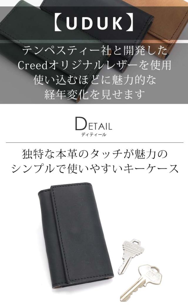キーケース クリード Creed UDUK ウドゥク メンズ 鍵 鍵入れ 革小物 コンパクト 牛革 本革 レザー シンプル 黒 おしゃれ メンズ財布 ギフト 【CPT】