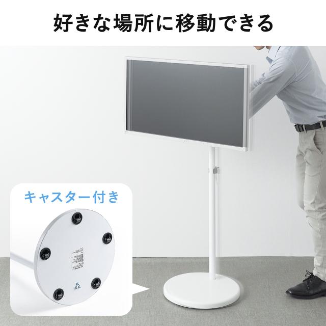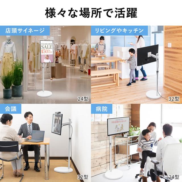 ●低床キャスター採用で移動も楽々で、見た目も綺麗なモニタースタンドです。●お店でのサイネージ用途や、会議・病院、家庭での使用に便利です。