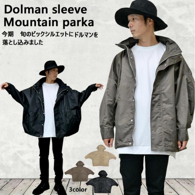 ドルマンスリーブラグランデザインで個性的ビッグシルエットなマウンテンパーカー。