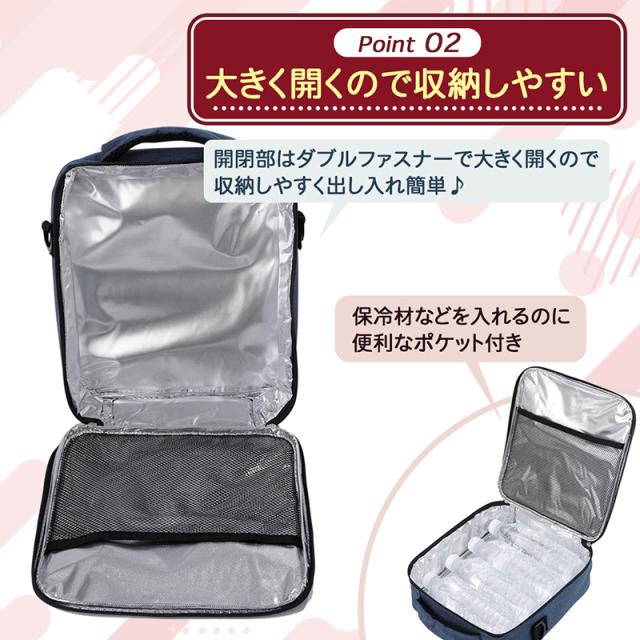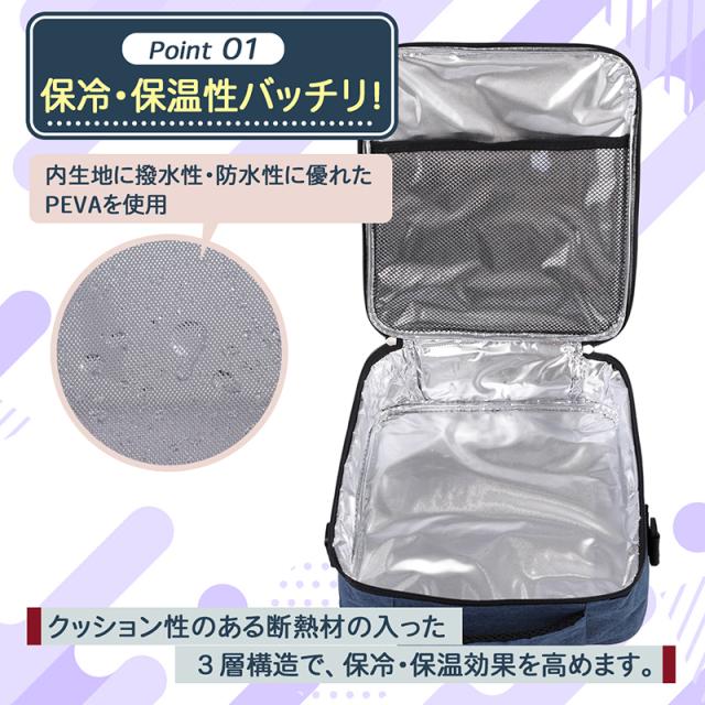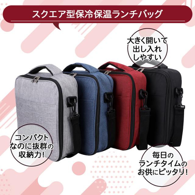 大きく開いて出し入れしやすいスクエア型保冷保温ランチバッグ