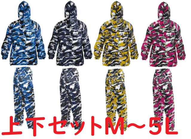 組み合わせ自由 迷彩ヤッケパンツ上下セット M、L、LL、3L、4L、5L カモフラ グレー ブルー タイガー マゼンダ ジャケット 裾ゴムズボン ポリエステル 軽量 VN-500 501
