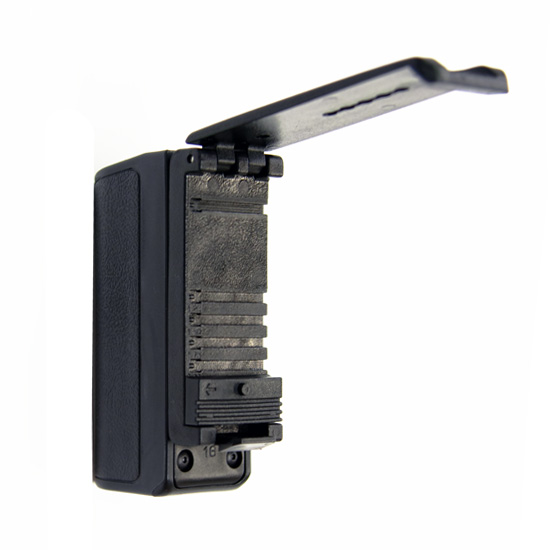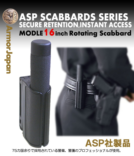 回転式サイドブレークスカバードはASP純正16インチフリクションバトン (振り出し警棒)に対応しています。 また ホルスターの角度は垂直以外に左右それぞれ3段階に角度変更が可能です。(左右は最大で水平角度まで)設定できる仕様になっています。 材質は銃器に使用される軽量ポリマーで仕上げられとても軽くしなやかで強固です。 バトンは縮めても伸ばした状態でも使用できます。