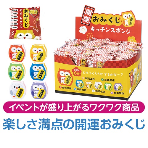 1個〜 購入可能 開運おみくじふくろう キッチンスポンジ おみくじ ふくろう柄 キッチン 用品 スポンジ 招福 イベント ノベルティ 粗品 景品 プチギフト 引っ越し 退職 異動 挨拶 消耗品