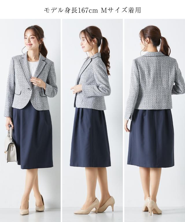 ワンピーススーツ 大きいサイズ レディース 入学式 卒業式 フォーマル ワンピース アンサンブル3点セット テーラード ジャケット + ノーカラー 有 白黒MIX系+アイボリー系+ネイビー系 8L/10L ニッセン nissen