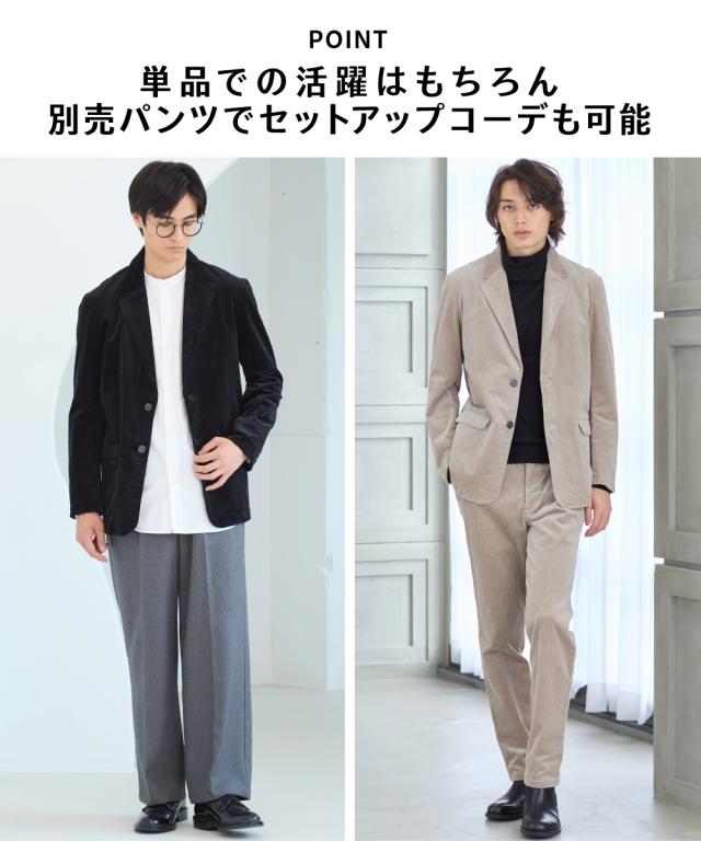 [keyword] メンズファッション 標準サイズ 普通サイズ 大きいサイズ ゆったりサイズ プラスサイズ あったか 冬 防寒 ストレッチ 伸び [comment] 秋冬の定番素材で暖かみのあるコーデュロイに、ストレッチを効かせたテーラードジャケット。 立体的な生地の表情とジャストなサイズ感、大人っぽい雰囲気を演出します。 大きいサイズも展開しております。(M/L/LL/3L/4L/5L/6L/8L/10Lサイズ) ■デザイン 畝のある表情豊かなストレッチコーデュロイジャケット。 フラップポケットデザインで、カジュアルながらしっかりとした仕立てが魅力です。 ■素材 ストレッチコーデュロイ素材で動きやすく快適。 ■おすすめのスタイリング インナーにタートルネックを合わせてスッキリとしたコーディネートがおすすめ ベーシックなシルエットなので、セットアップ可能な同素材のパンツでコーディネート出来ます。